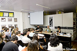 Após as palestras e discussões sobre a política de proteção aos sítios espeleológicos ocorrida na sede da SBE, em Campinas, no dia 30.06.2012, Heros Lobo apresentou o livro “O ser humano e a paisagem cárstica”, fruto da parceria entre a SBE, a Votorantim Cimentos e a Reserva da Biosfera da Mata Atlântica, seguido por um